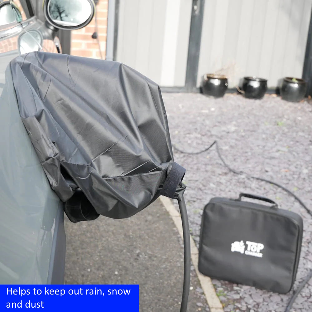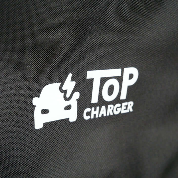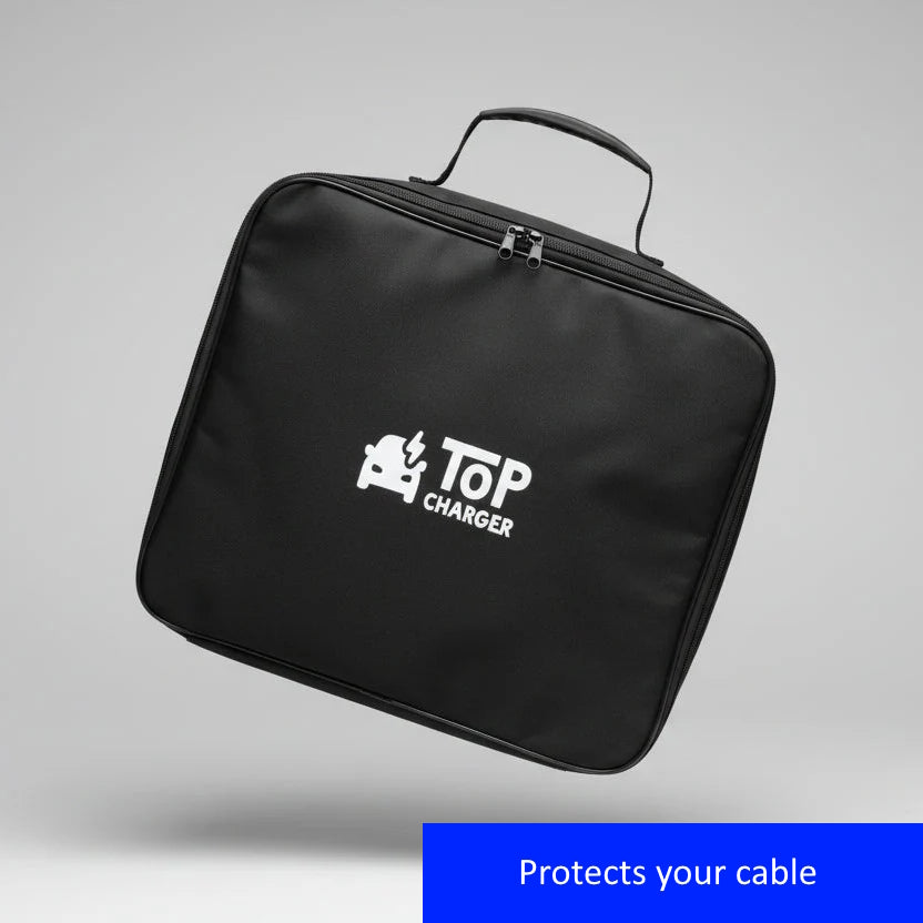 You get the Top Charger Type 2 to Type 2 7m cable, a durable, padded carry bag with the Top Charger logo, a waterproof magnetic car charging port cover, and a premium black microfibre cloth to wipe down your cable and keep it looking its best.